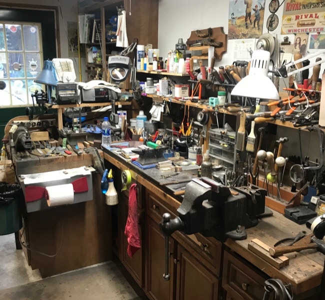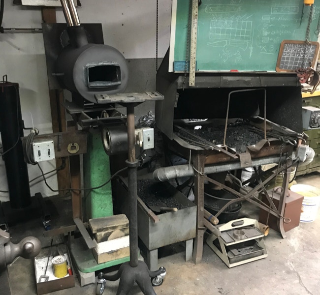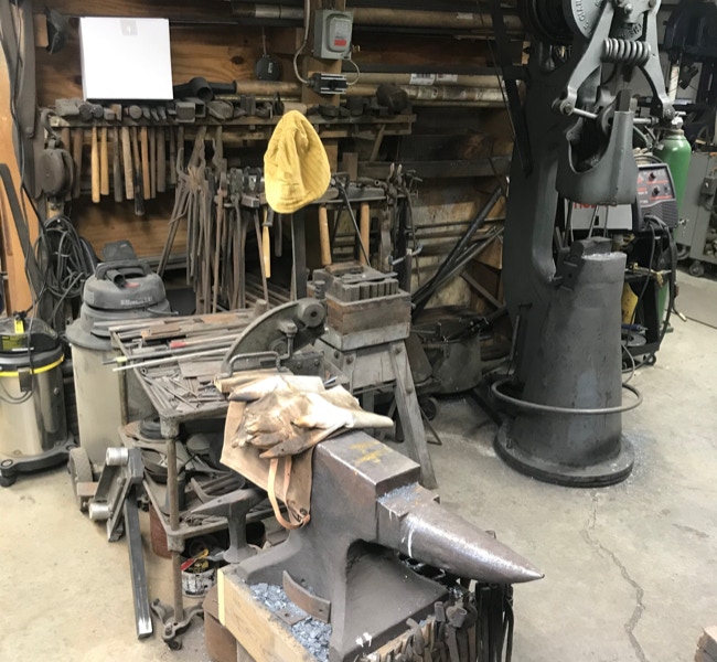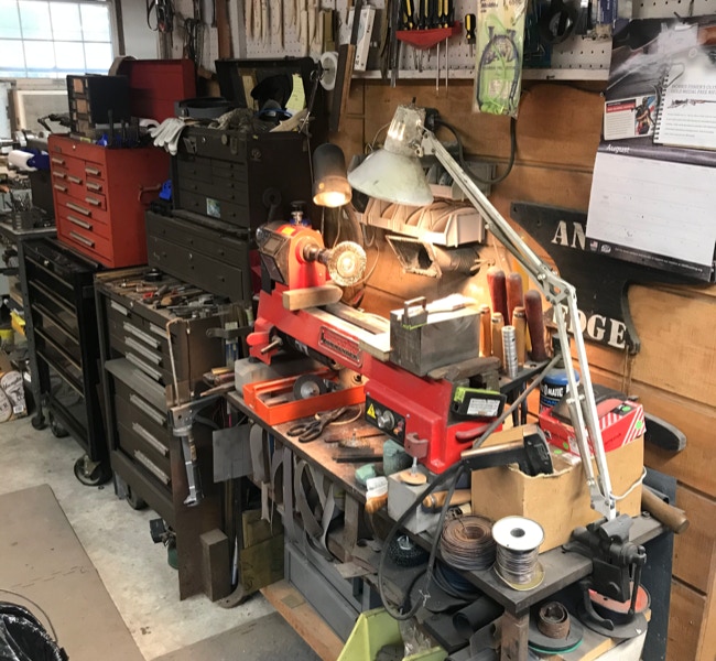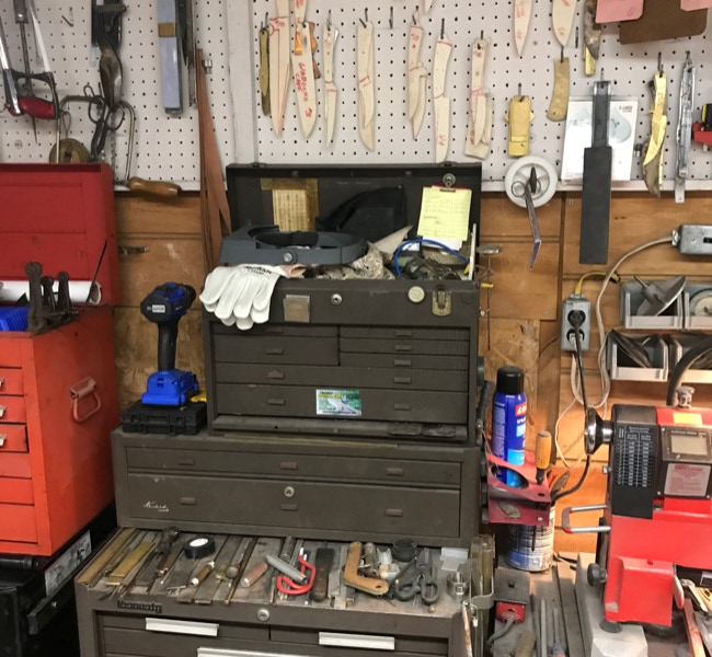 blacksmithing in 1976 making items for buck skinners. I met knife maker Billy Watson at a rendezvous in 1988; he was making Damascus and hand forging knives. I was hooked, quizzed Billy, visited his shop,